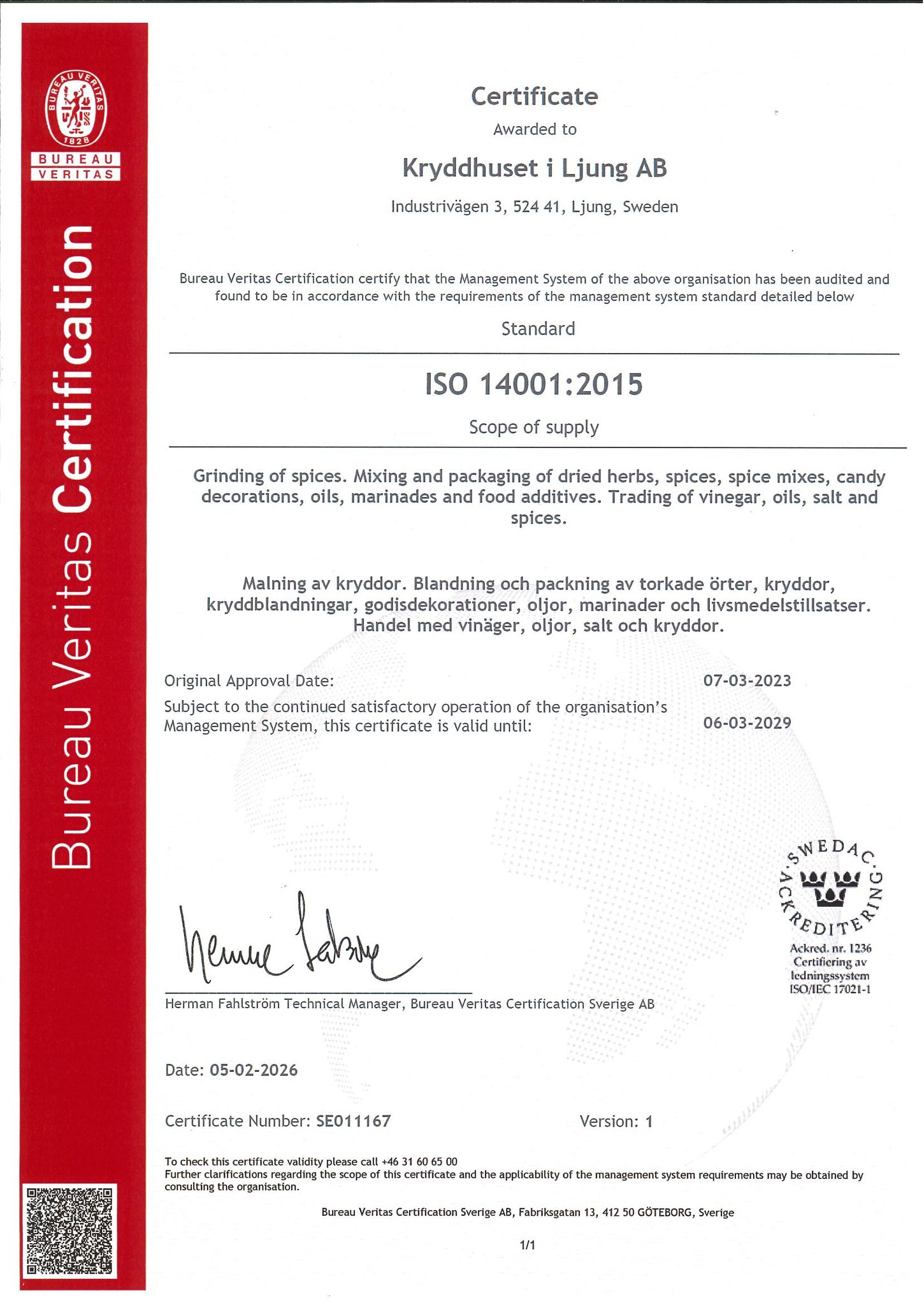 Kryddhuset har sedan några år tillbaka anpassat verksamheten till en mer hållbar produktion och vi har startat vår resa med enkla medel. Med viktiga insatser som att installera bergvärme och förbättra isolering, samt utnyttja värmen från maskiner och placerat dessa på bra platser i vår fabrik i Ljung. Dessutom har vi investerat i mer energisnåla- och flexibla linjer. Det mer omfattande jobbet som har störst positiv miljöpåverkan står våra leverantörer för, genom olika vattenprogram för att kontrollera och anpassa det vatten som finns beroende på produkt och andra förutsättningar. Sociala program för att öka till god praxis inom jordbruk där man utbildas i att använda sig av mindre bekämpningsmedel och främja biologisk mångfald. det är mycket kvar att göra men vi är på rätt väg.