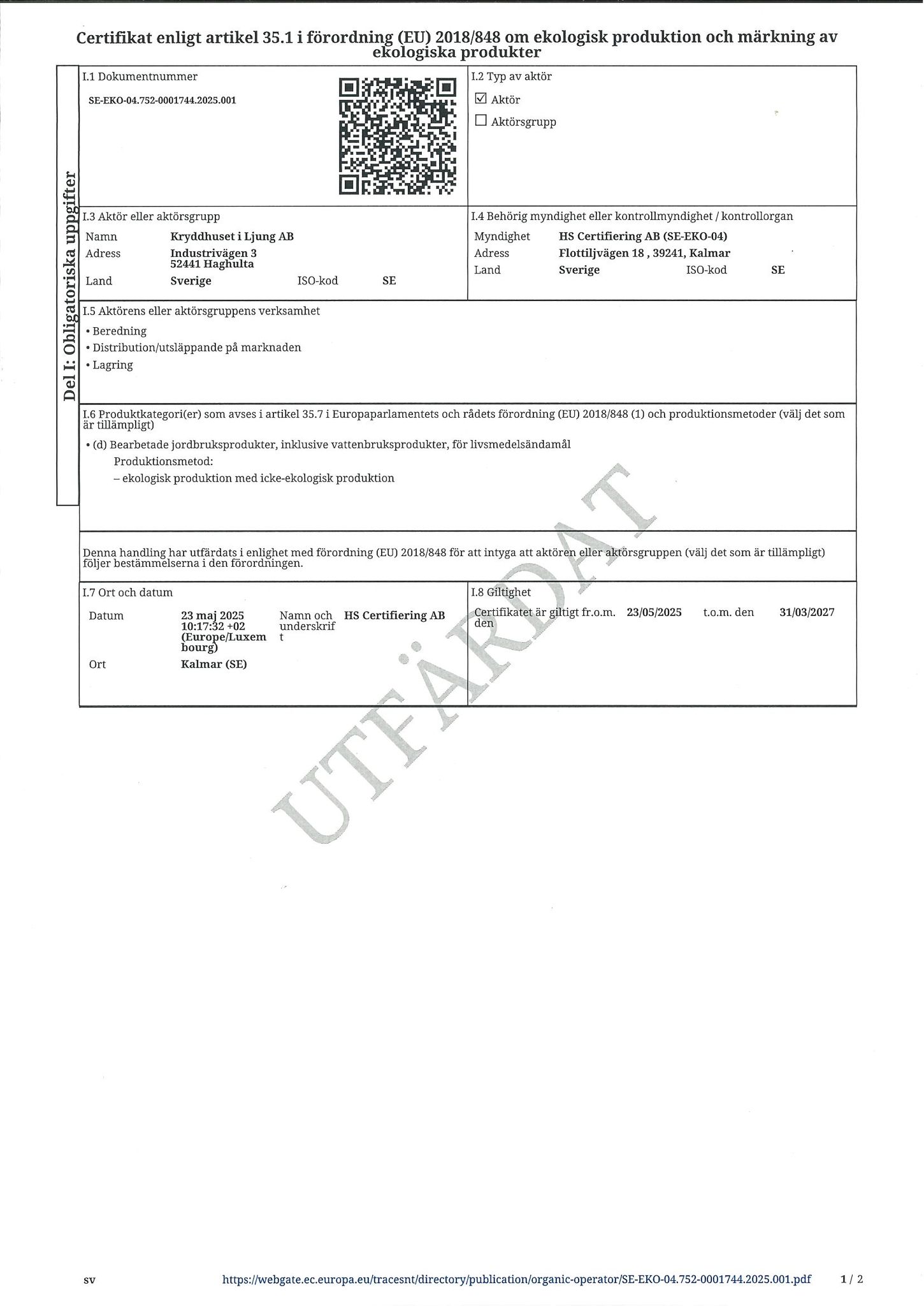 Kryddhuset har en godkänd anläggning för Eko-produktion sedan 10 år tillbaka. Målsättningen och ambitionen är att komplettera sortimentet med flera ekoprodukter redan i slutet av 2021.