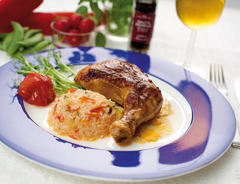 In-Flavor Honey & Ginger. Grillad marinerad aubergine och zucchini med parmaskinka och riven parmesan. Fetaost och paprika, dekorera med glassa gourmet classic.