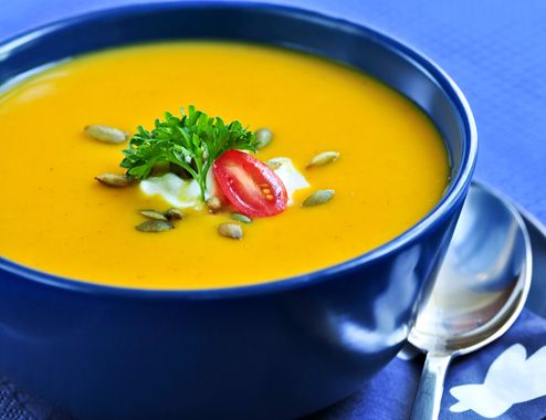 2. Fräs löken och morötterna i smör i en kastrull. Strö över socker. Tillsätt buljongen. Koka tills morötterna är mjuka 10-15 min. Kör morötterna i matberedare till puré (eller med stavmixer).