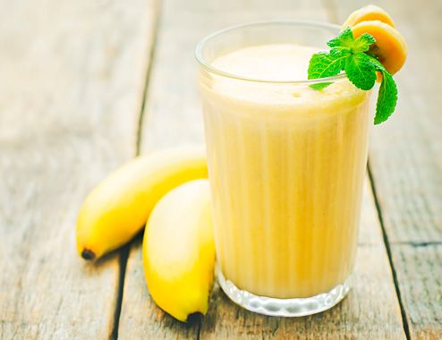 All frukt i bitar, blanda allt i en hög mixskål tillsammamns med yougurten. Mixa och späd med vatten till önskad koncistens.