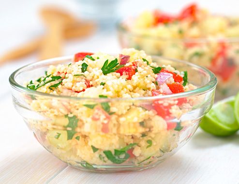 Sätt ugnen på 200° Blanda yoghurt, senap, senapsfrö, gurkmeja, salt och peppar i en bunke. Dela kycklingklubborna i två bitar i ”leden” och lägg bitarna i senapsblandningen. Blanda väl så att delarna blir täckta. Lägg sen kycklingen i en ugnssäker form, ta med yoghurtblandningen och stek mitt i ugnen ca 30 min. Skala morötter, lök, och vitlök och dela dem i bitar. Dela tomaten. Hacka grönsakerna fint. Om du använder en matberedare, så kör morötterna först i några sekunder, tillsätt sedan lök, vitlök och tomat. Fräs grönsakshacket i olivolja i en kastrull i ca 2 min. Tillsätt vatten, buljongtärning och salt, låt koka upp. Häll i couscous, blanda väl. Ta kastrullen från värmen och låt svälla 5 minuter under lock. Rör om i couscousen och servera med kycklingen.
