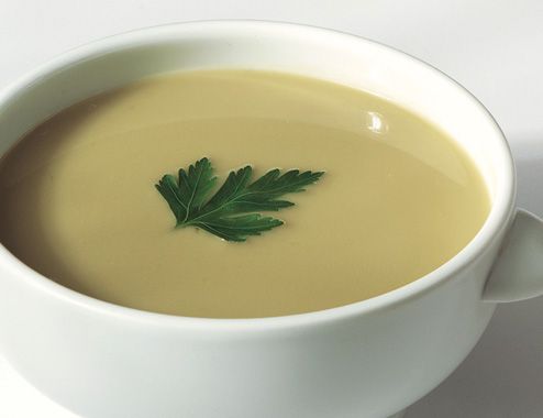 3. Smält smöret och rör ner i mjölet. Späd med mjölken och buljongen. Tillsätt purén. Låt koka i ca 10 min. Smaksätt med salt och körvel.